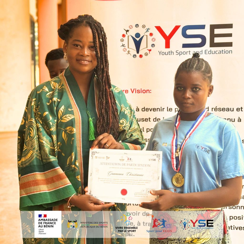 Les communes de Tanguiéta et de Natitingou sont les bénéficiaires du projet. L’étape de Tanguiéta a pris fin le dimanche 29 septembre 2025, après quatre mois d’activités. Les participantes ont reçu leurs parchemins en présence des autorités locales, des partenaires, des encadreurs et des membres de Youth Sports and Education, porteur du projet.